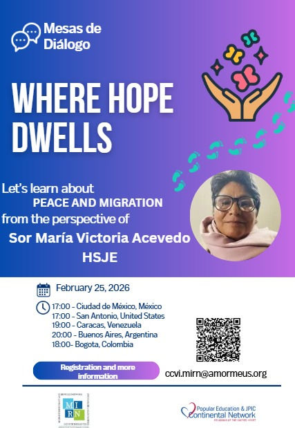 Our second guest of the year is Sister Victoria Acevedo, who will be talking about building peace in the context of human mobility!